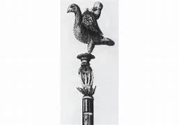 Made of enameled and filigreed gold, the scepter was 56 cm long, the rod was topped by a carved hand cupping a globe of the world, and at its apex, a dove.